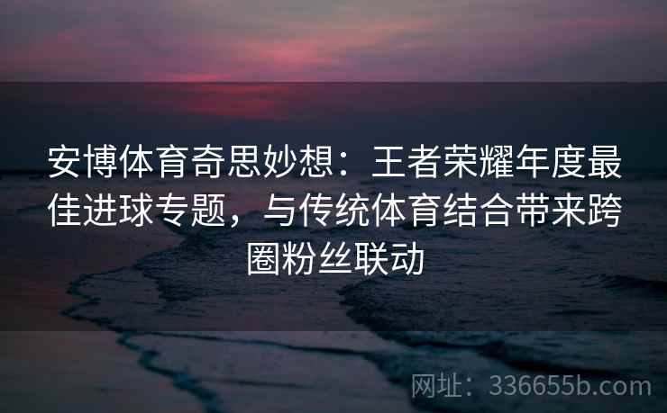 安博体育的“王者荣耀年度最佳进球专题”活动,充分展示了其在体育娱乐领域的创新精神和市场洞察力。通过这种跨界融合的方式,不仅成功引发了电竞与传统体育之间的强大联动,还为品牌传播和粉丝文化的建设提供了新的思路与范本,值得所有品牌和企业在未来的营销活动中参考和借鉴。